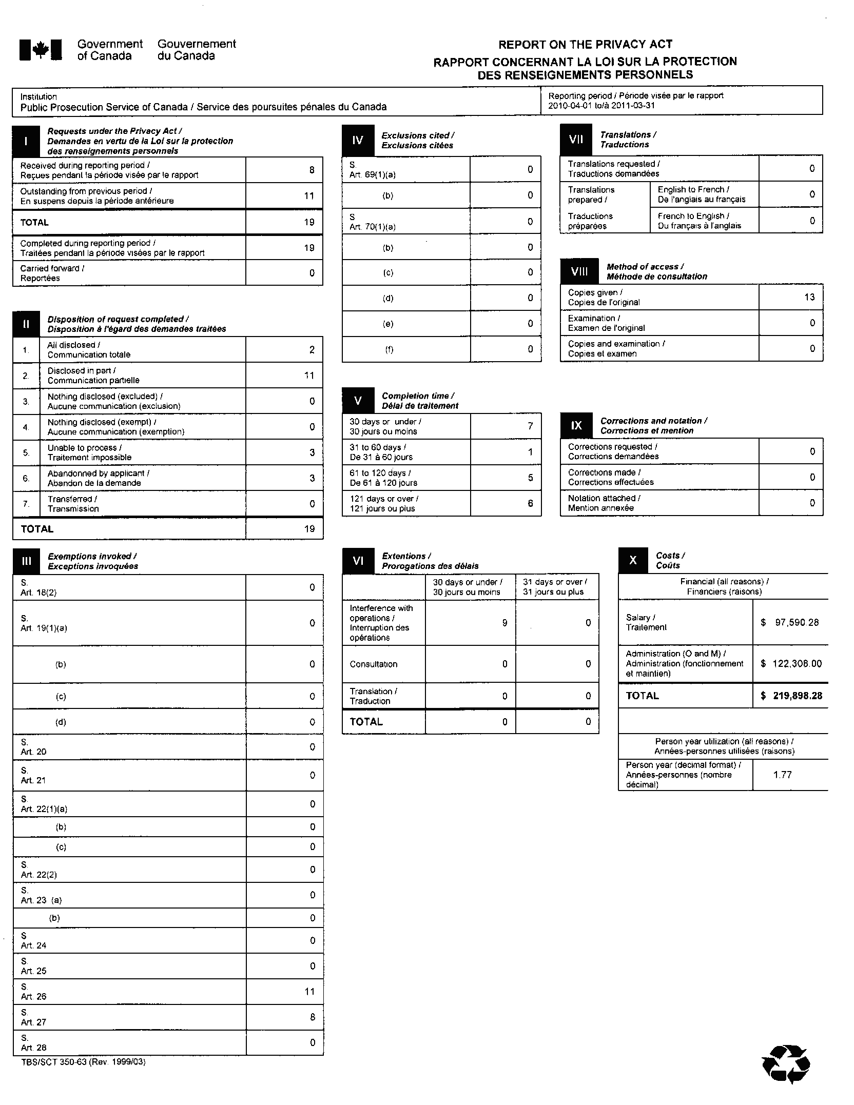 This Annual Report provides a summary of the management and administration of the Privacy Act within the Public Prosecution Service of Canada for the fiscal year 2010-2011.